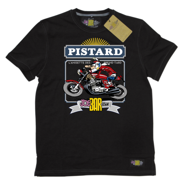 T-shirt coton jersey blanc mercerisé touché pêche 185gr, coupe fit près du corps. Bande de propreté d'épaule à épaule. Finition double piqûres manches et bas. Grandes étiquettes tissées col et devant. Marquage poitrine.